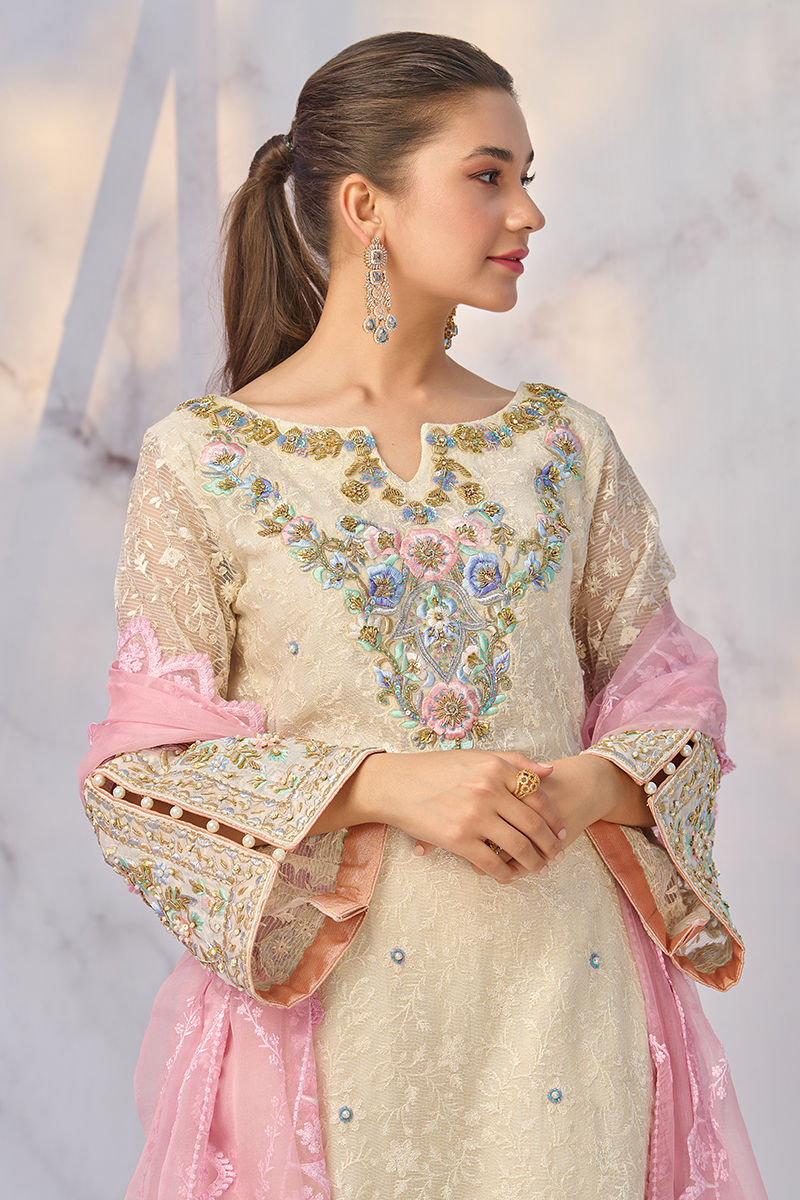 Color: Off White Fabric: Khadi Net Work Details: Embellished