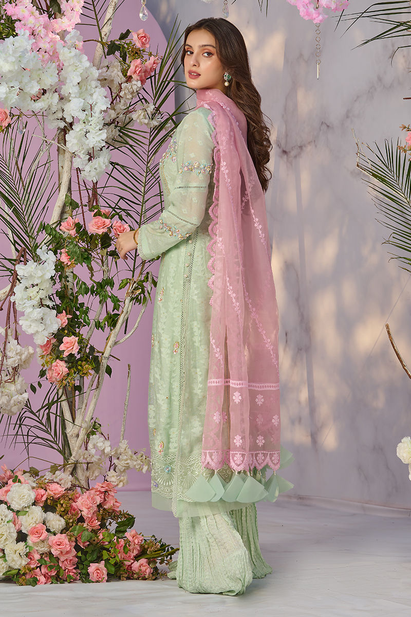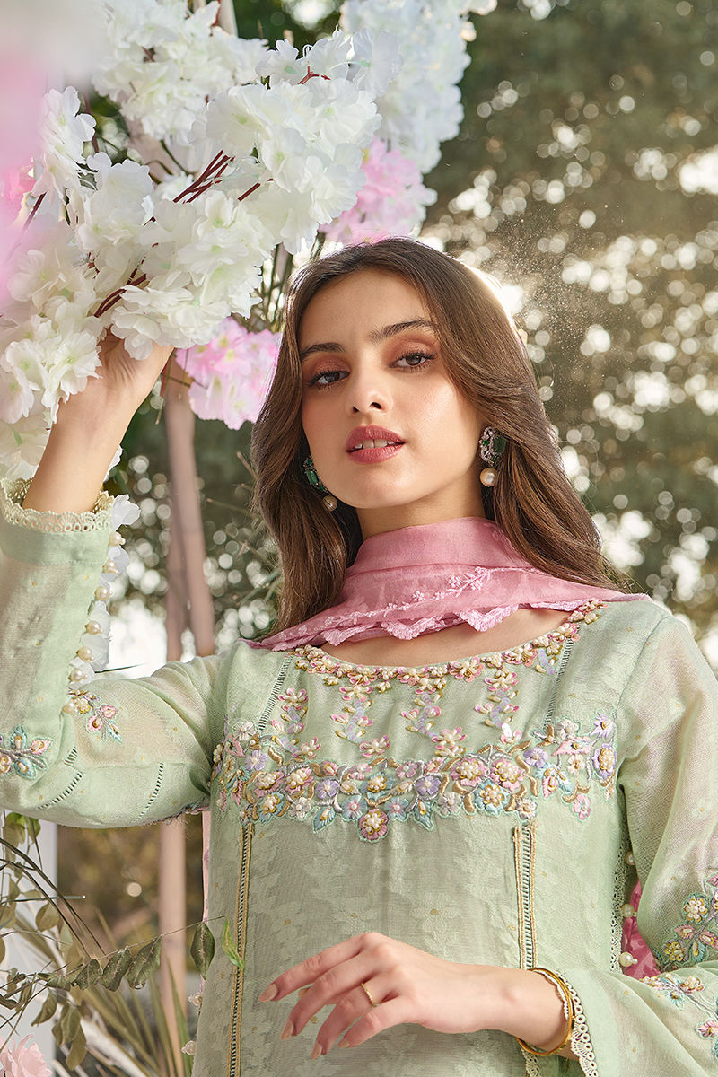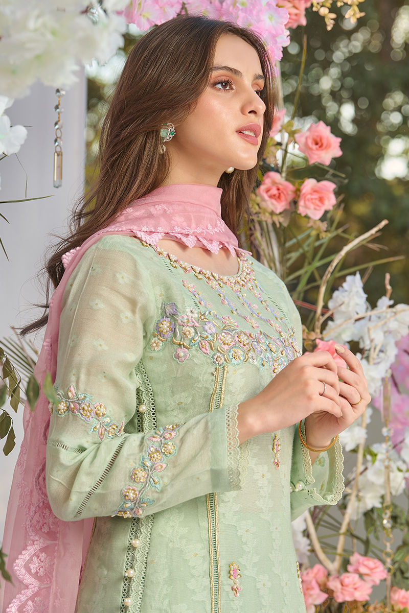 Color: Mint Fabric: Khadi Net Work Details: Embroidered