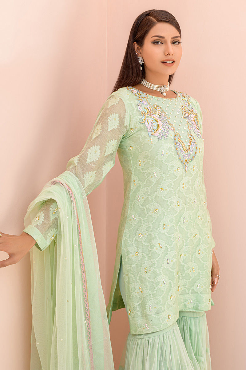 Color: Mint Fabric: Khadi Net Work Details: Embellished