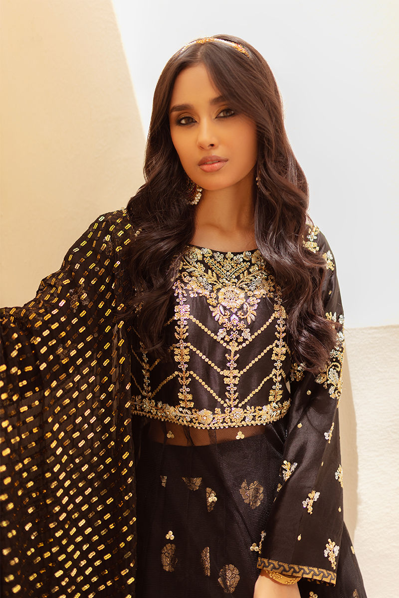 Color: Black Fabric: Shirt: Pure Silk, Pant: Tissue Net