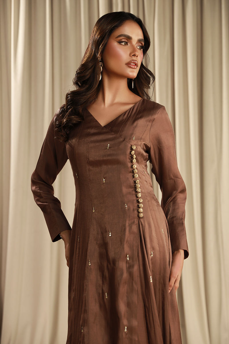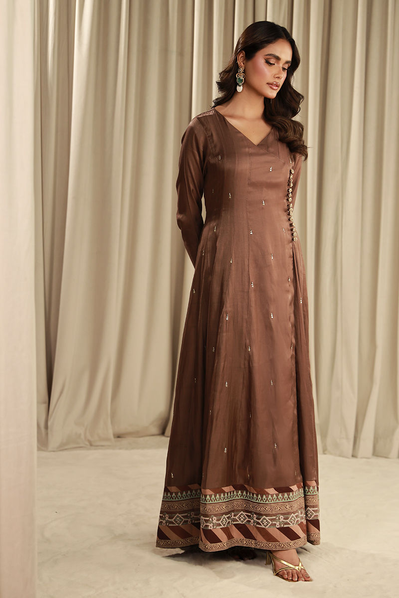 Color: Brown Fabric: Silk Work Details: Embellished And Block Printed