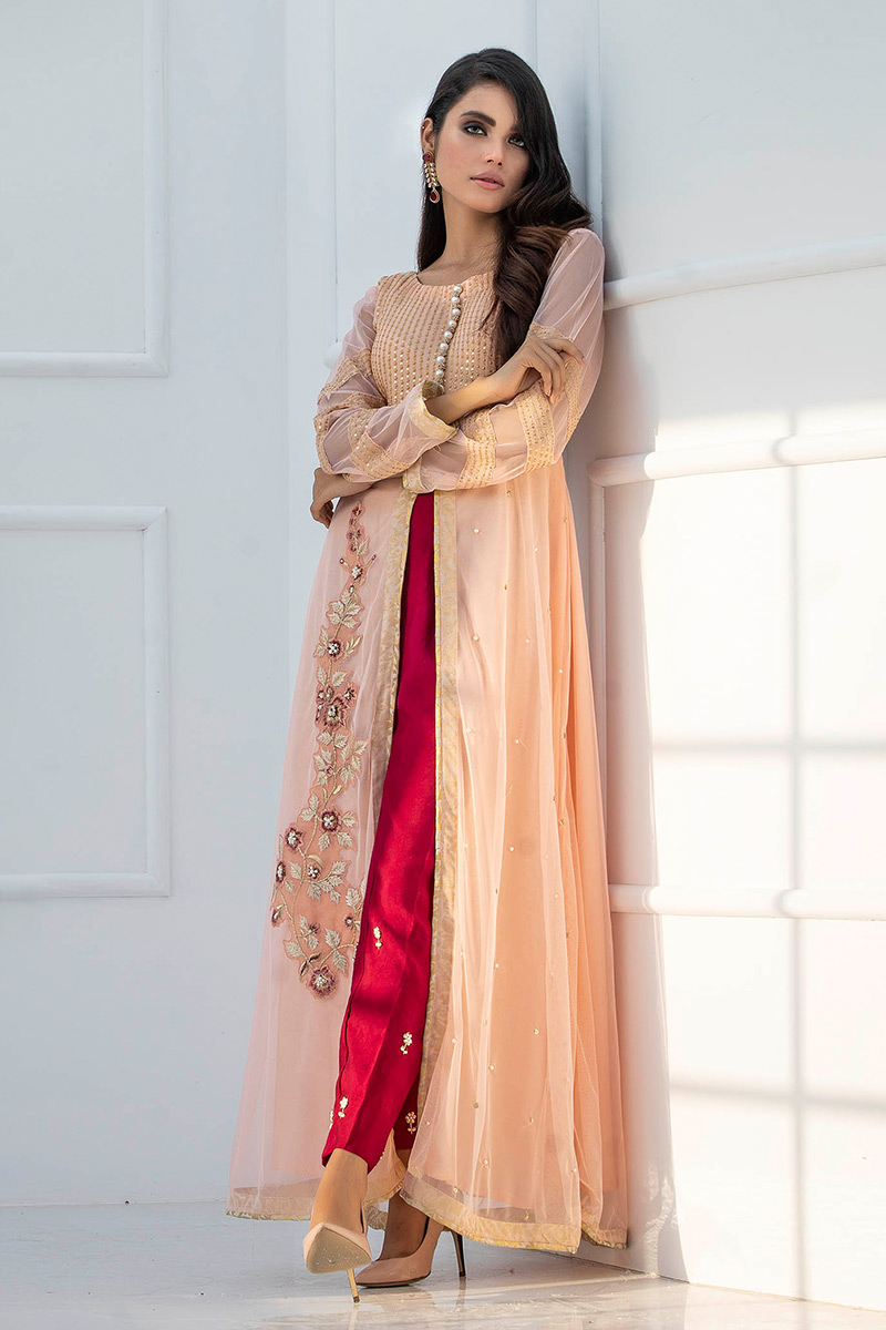 Color: Peach Fabric: Net Work Details: Embellished