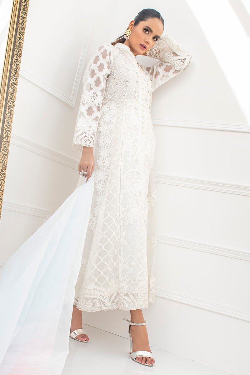 Color: White Fabric: Organza Work Details: Embroidered