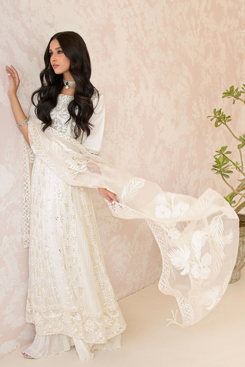Color: Shirt and pants: White Fabric: Shirt: Chiffon and Pants: Silk Work Details: Mirror Work and Embellishment