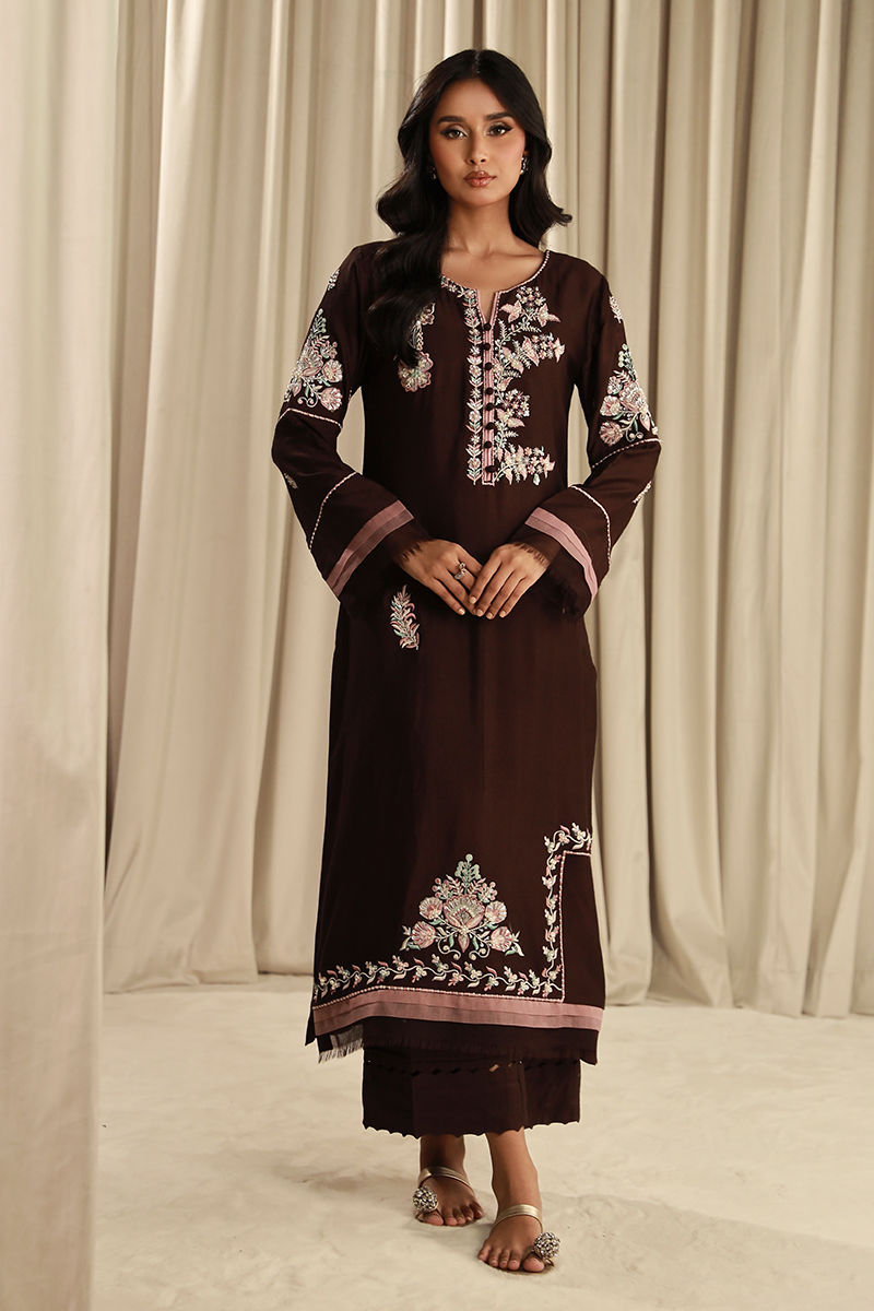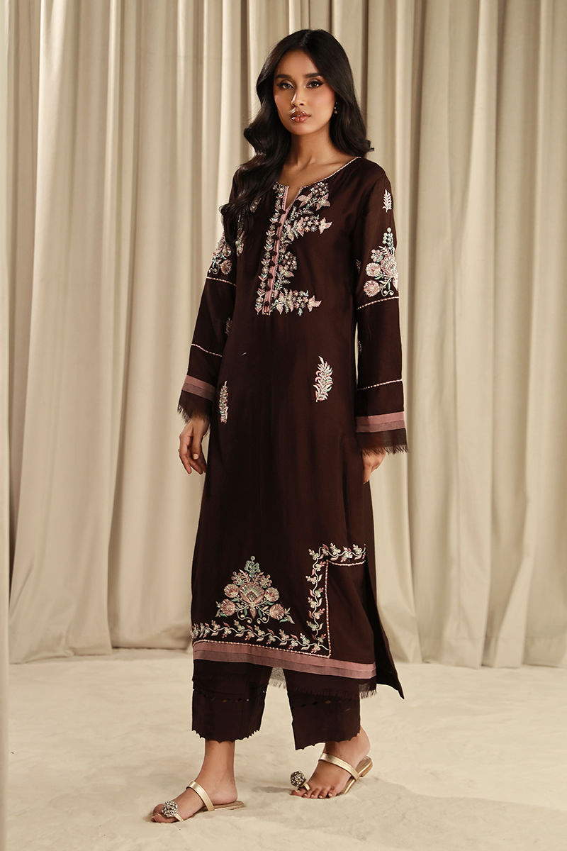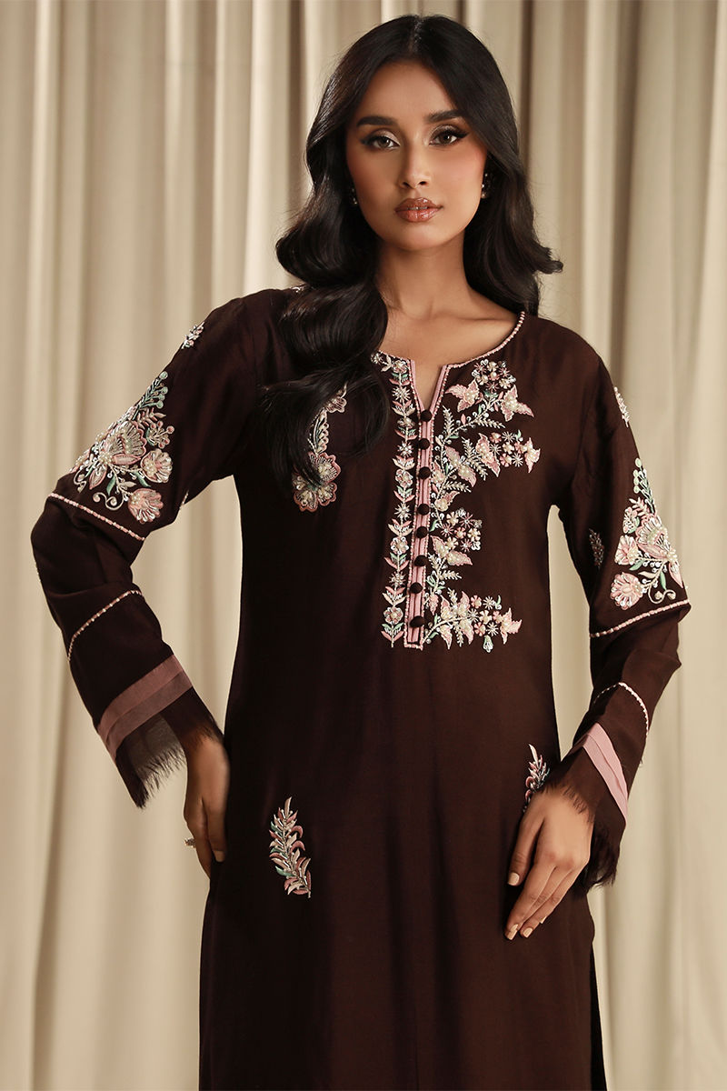 Color: Chocolate Brown Fabric: Khaddi Work Details: Embroidered And Embellised