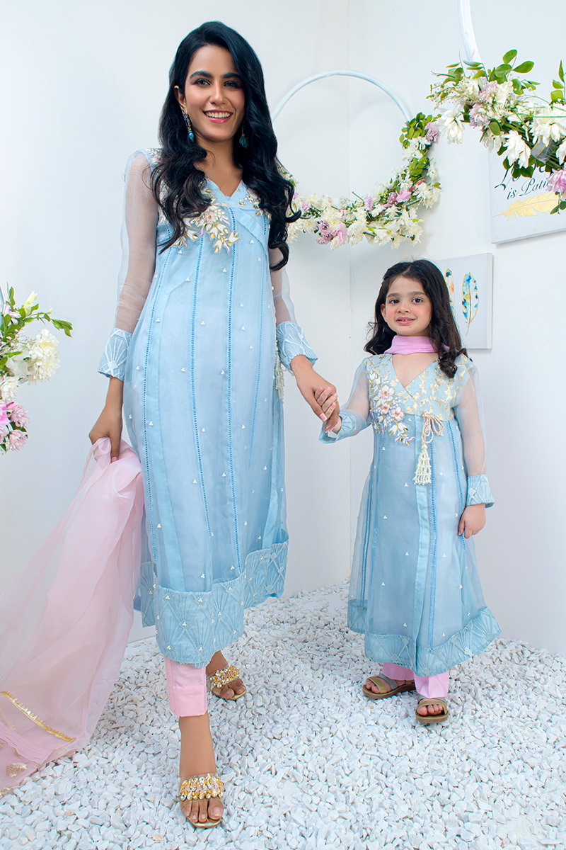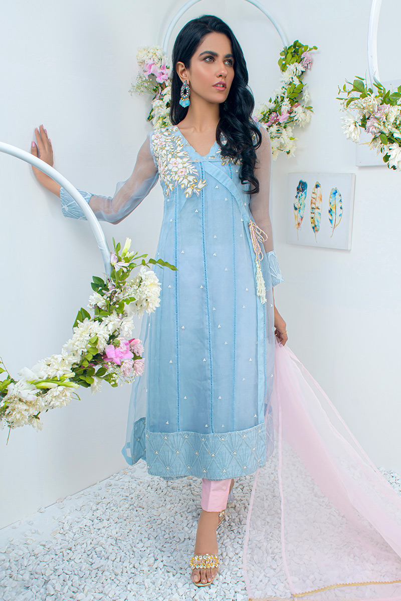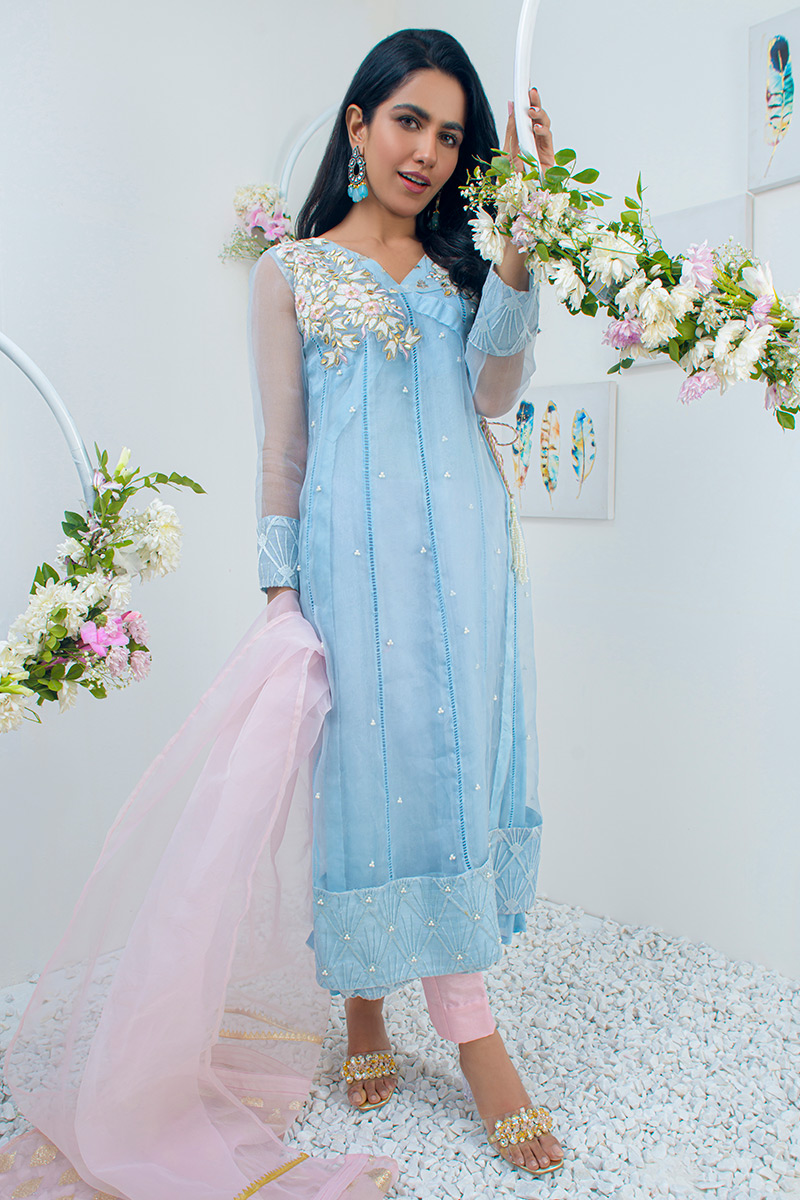 Color: Light Blue Fabric: Organza Work Details: Embroidered