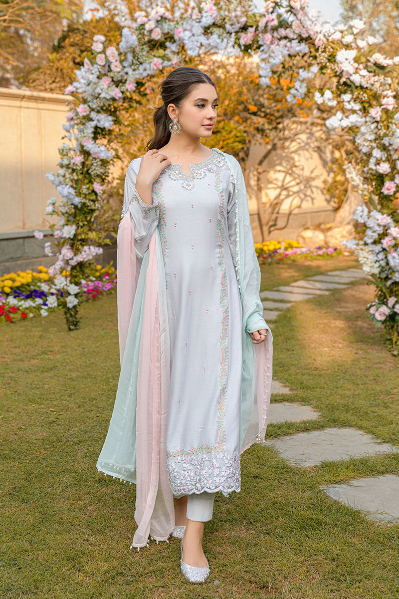 Effortless sophistication meets intricate details in our straight cut set. Adorned with exquisite embroidery, blockprints, and lace, this ensemble exudes refined elegance. The pastel-colored embroidered neckline adds a touch of grace, elevating the overall style for a refined and chic look.