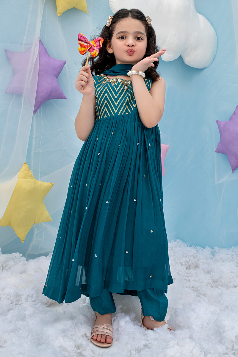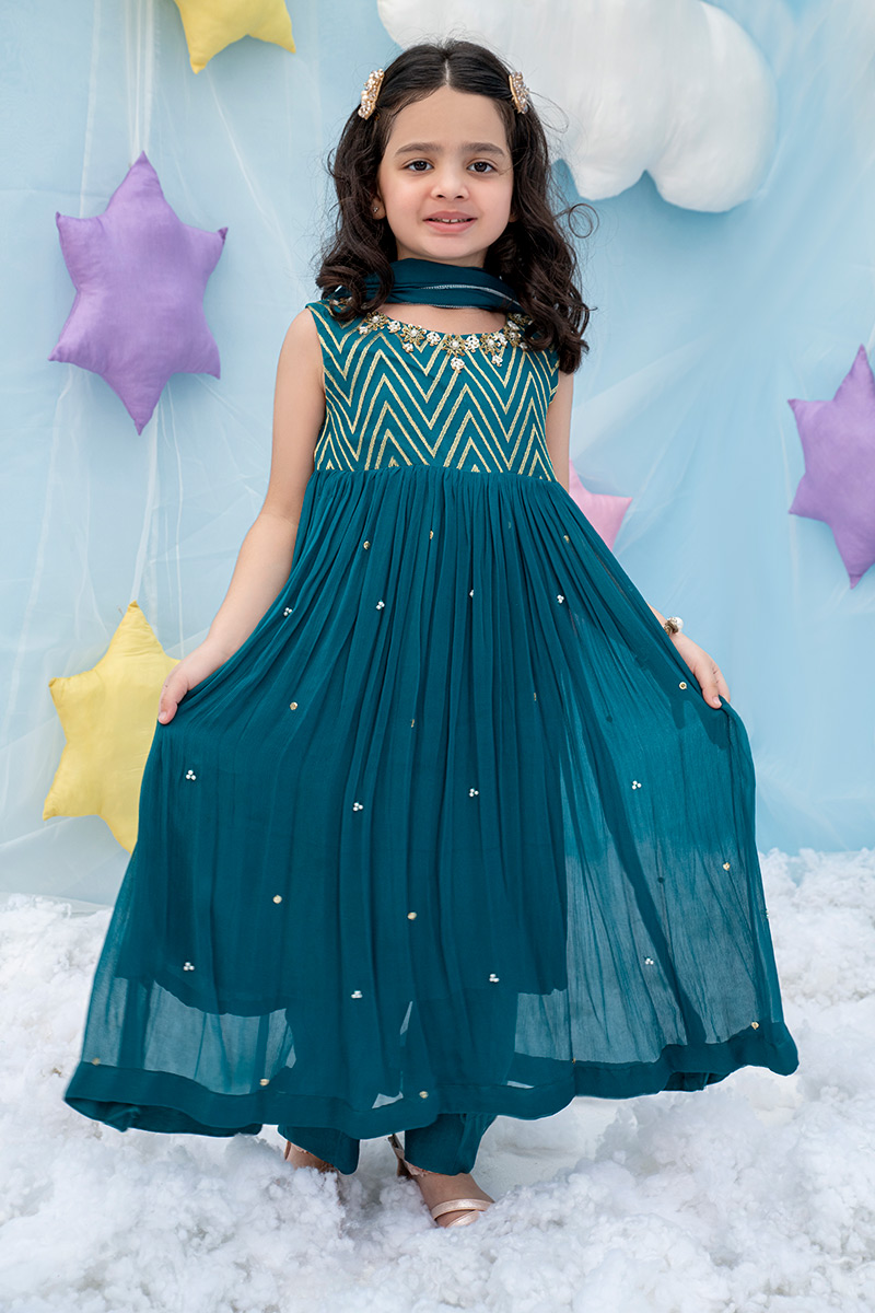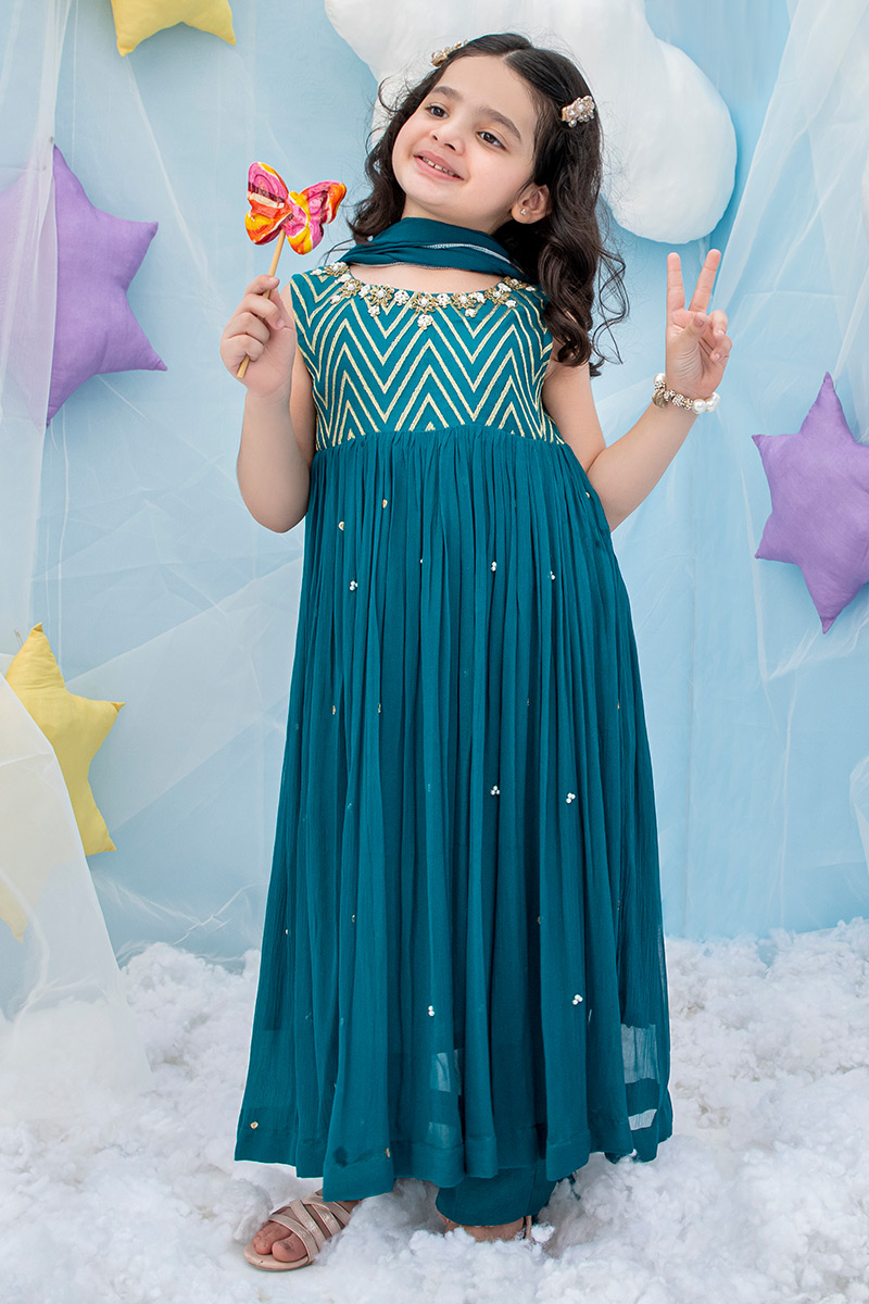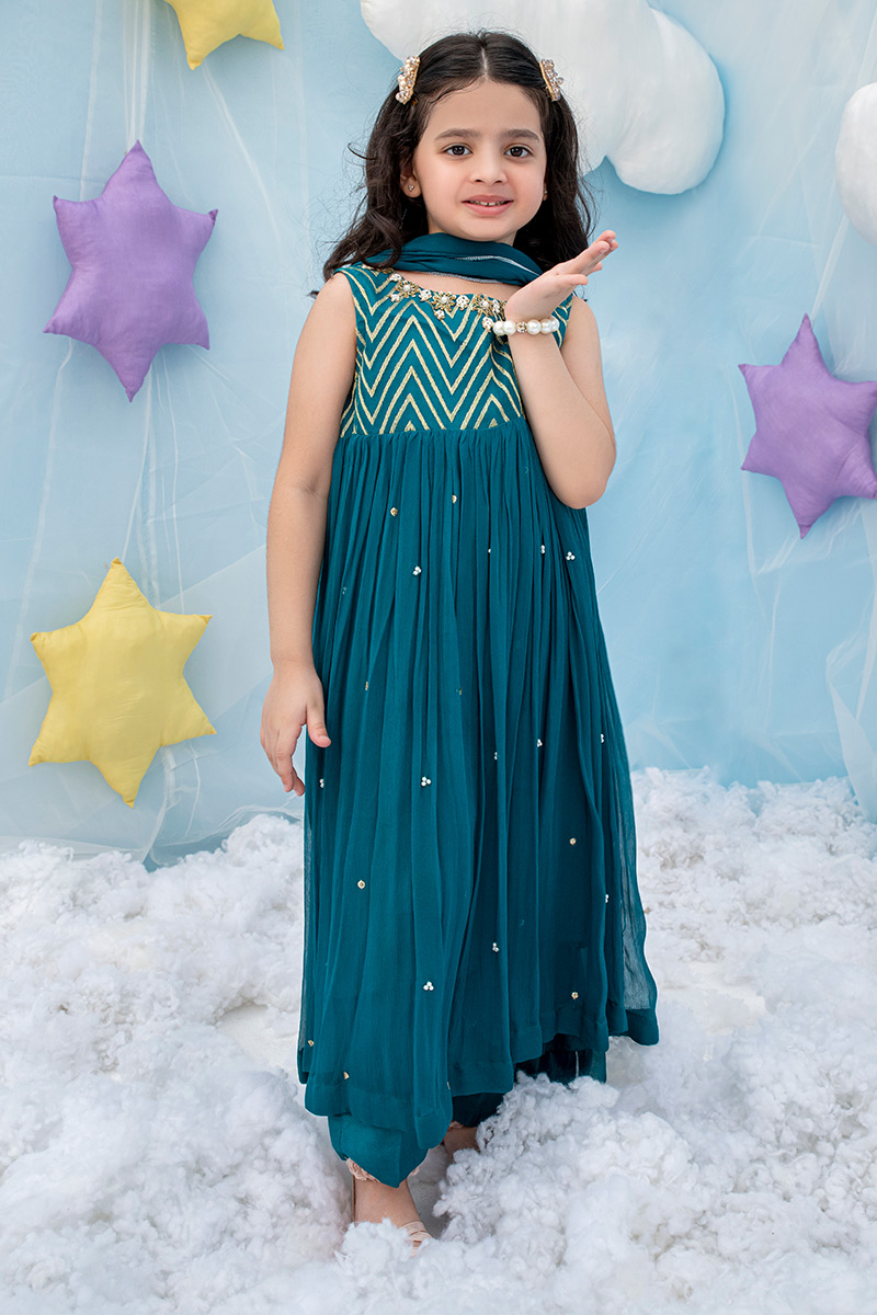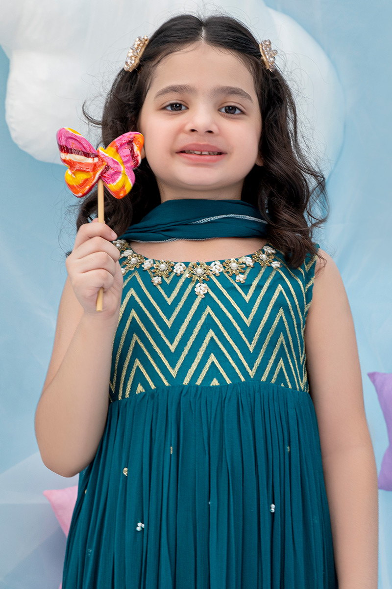Color: Green Fabric: Chiffon Work Details: Embroidered