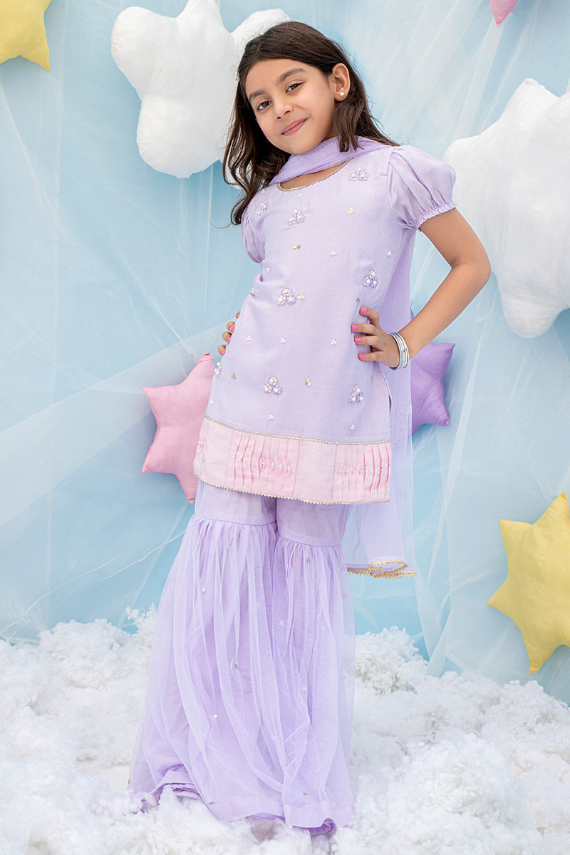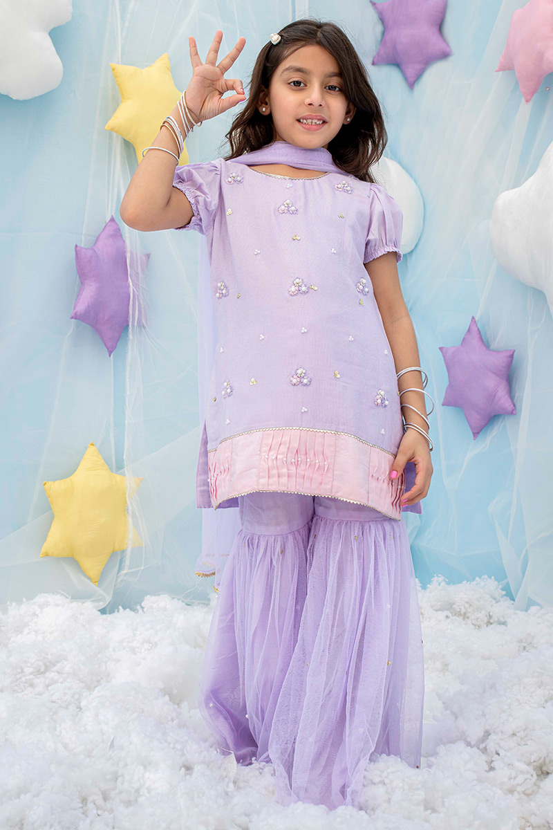 Color: Lilac Fabric: Khadi Net Work Details: Embroidered