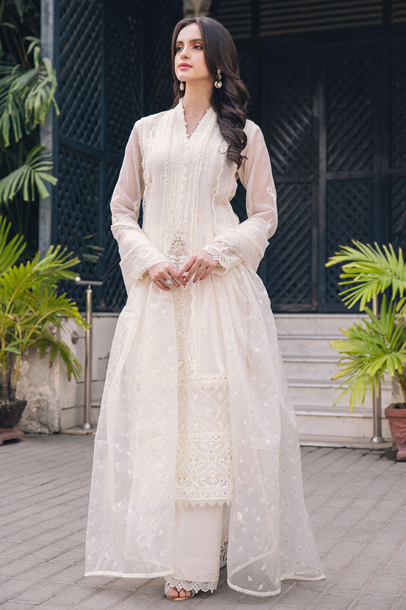 Color: Ivory White Fabric: Cotton Net, Silk Work Details: Embroidery, Cutwork