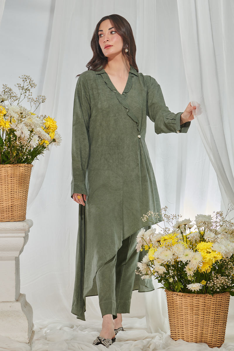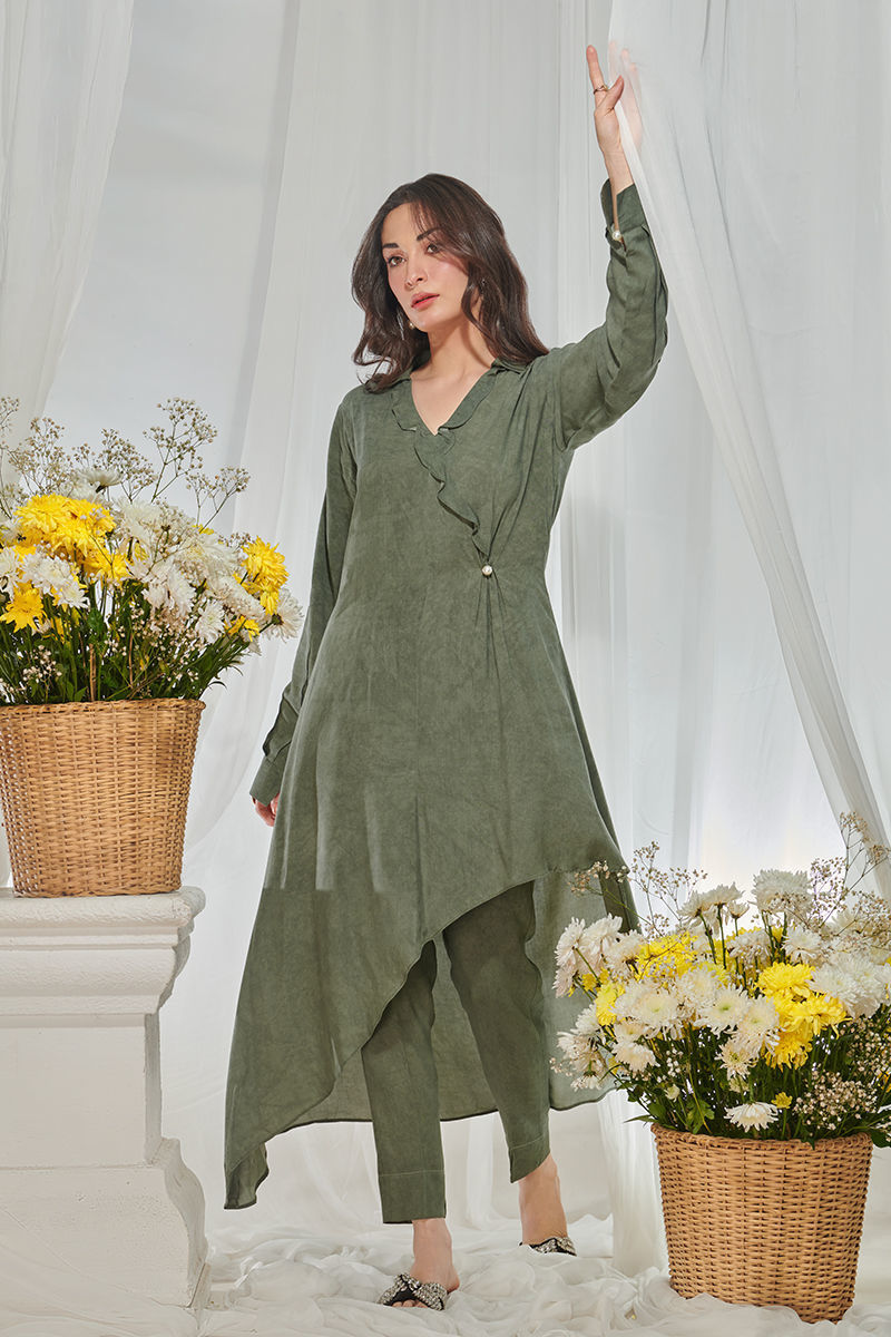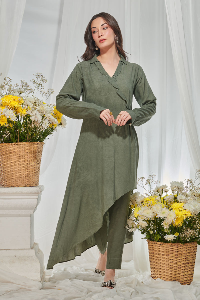 Color: Green Fabric: Shirt: Linen And Pants: Butter Linen