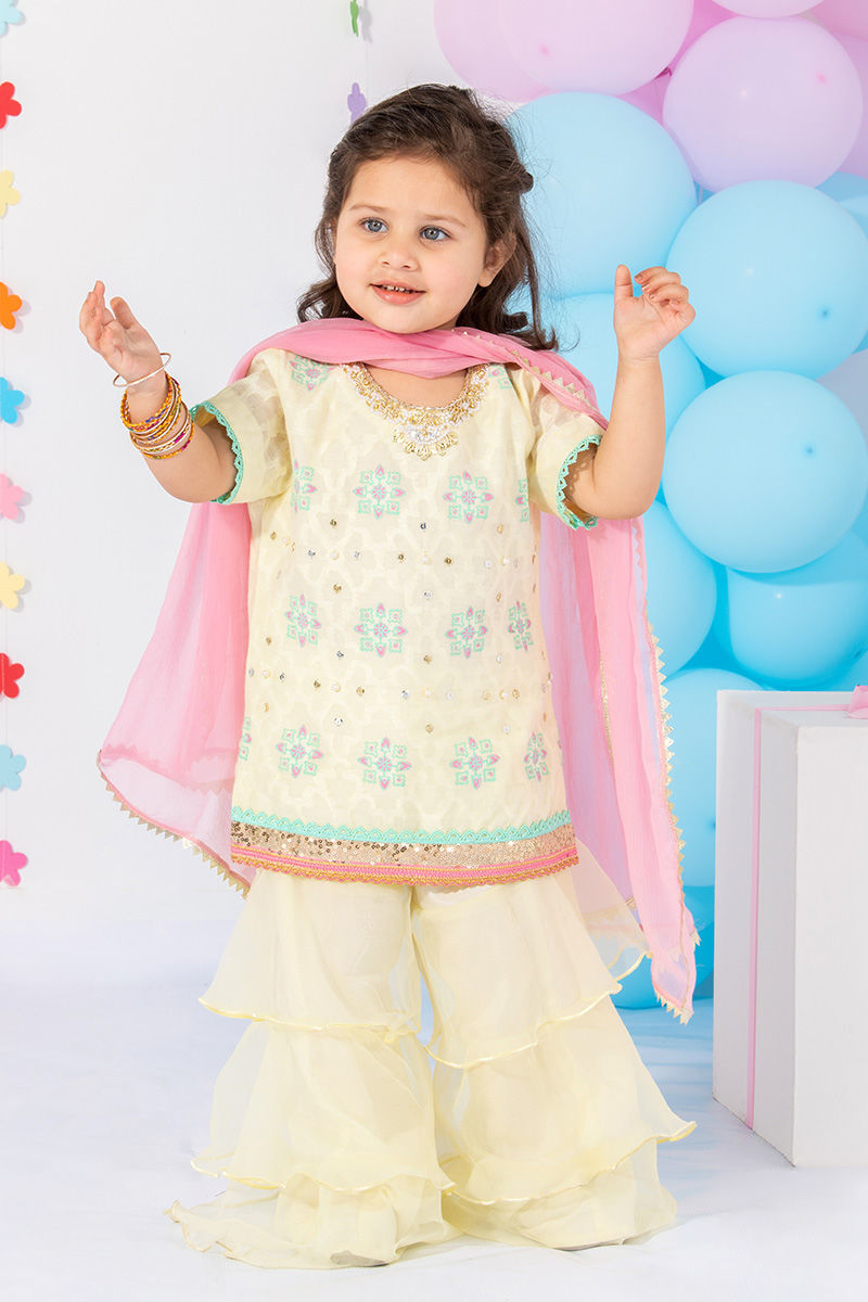 Color: Light Yellow Fabric: Shirt: Self Khadi Net, Pants: Organza Work Details: Embellished
