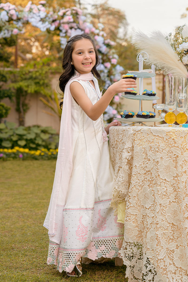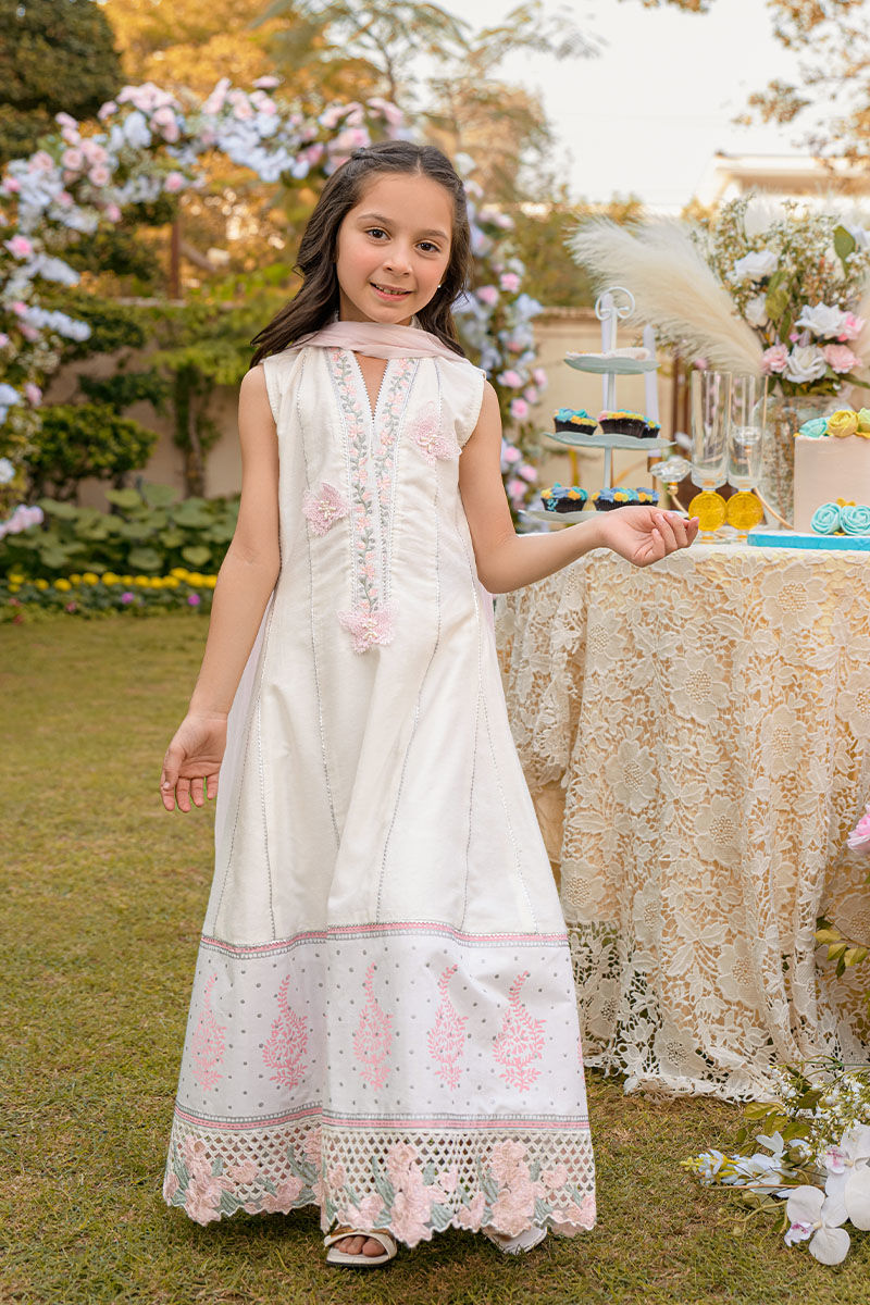 Embrace timeless elegance with our exquisite white kalidar. Meticulously crafted for various occasions, it showcases intricate hand embroideries and a block-printed neck and hemline, adding an extra touch of grace to its design. Elevate your style for any even