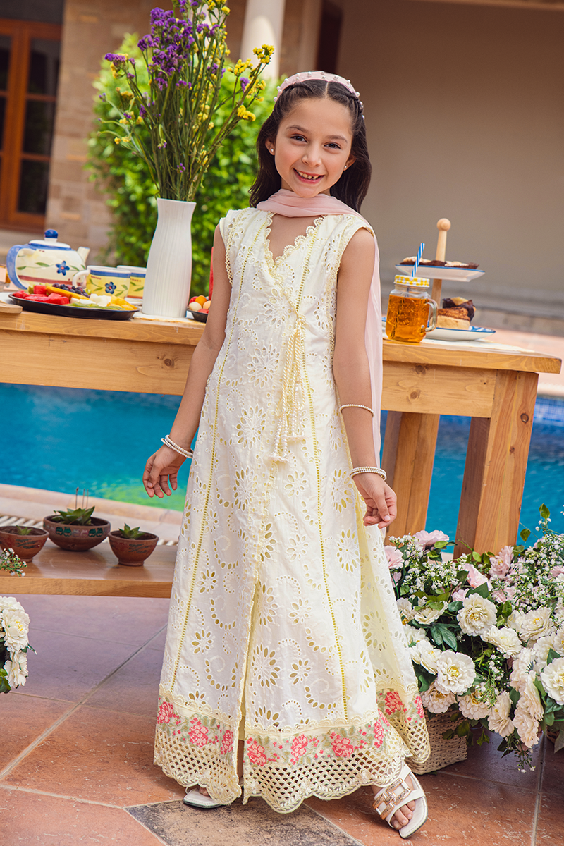The yellow Chikan Angharka set effortlessly combines elegance and coziness, boasting intricate embroidery and delicate lace trimmings. This ensemble not only enhances your wardrobe but also prioritizes comfort without compromise