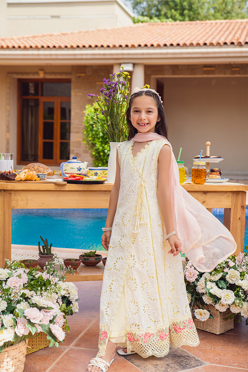 The yellow Chikan Angharka set effortlessly combines elegance and coziness, boasting intricate embroidery and delicate lace trimmings. This ensemble not only enhances your wardrobe but also prioritizes comfort without compromise
