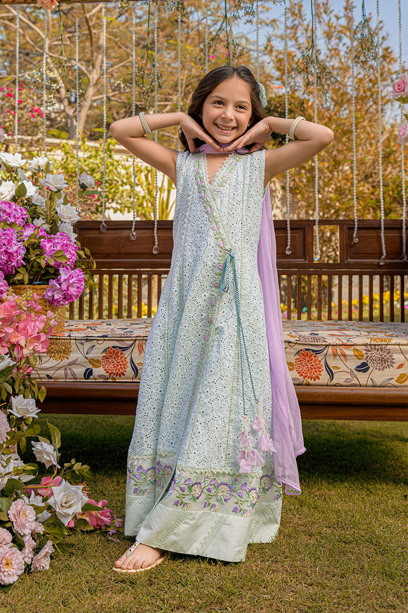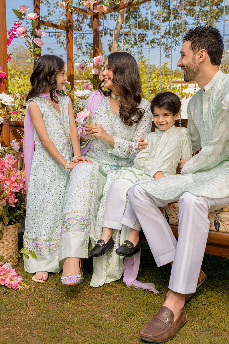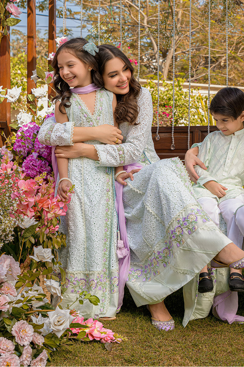 Color: Mint, Lilac Fabric: Shirt: Chikan, Pant: Silk Work Details: Embroidery, Lace Details