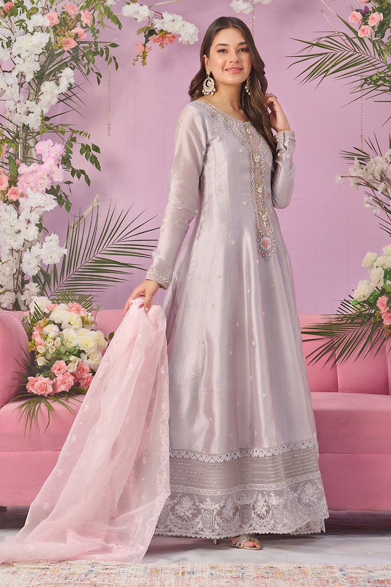 Color: Grey Fabric: Silk Work Details: Hand Embroidered
