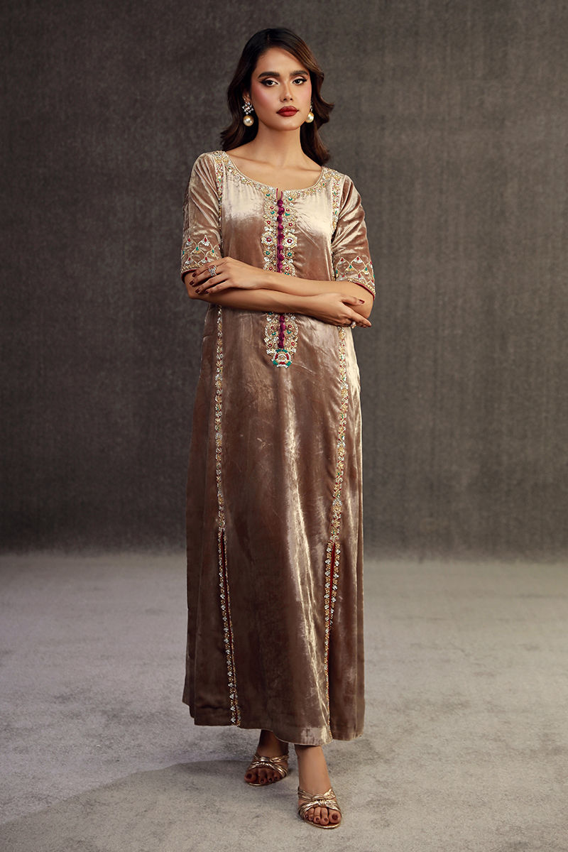 Color: Champagne Fabric: Velvet Work Details: Embellished