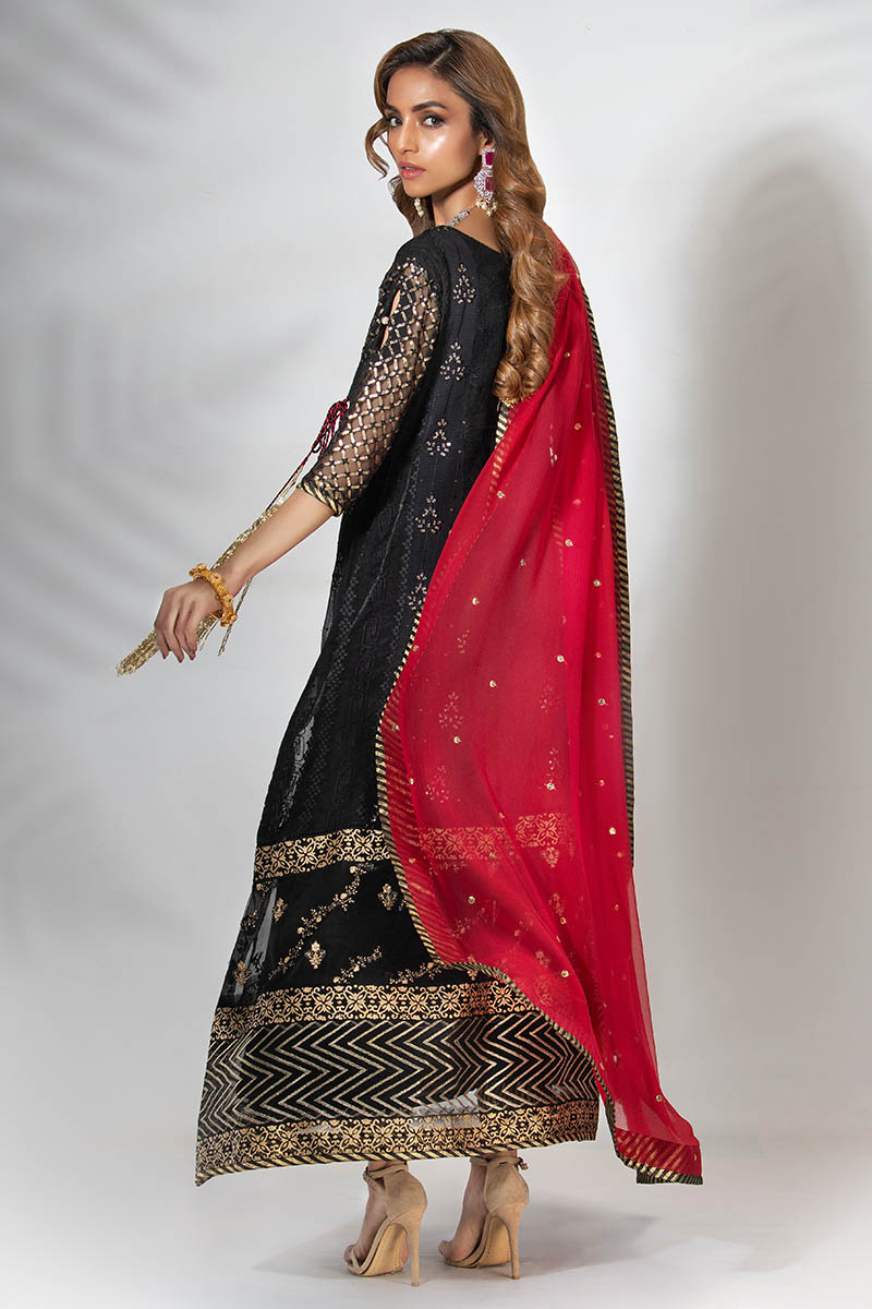 Color: Black Fabric: Shirt: Organza, Pants: Jamawar