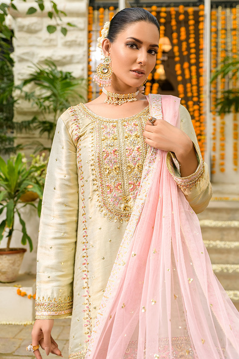 Color: Mint Fabric: Shirt: Masoori, Shalwar: Silk Work Details: Embroidered and Embellished