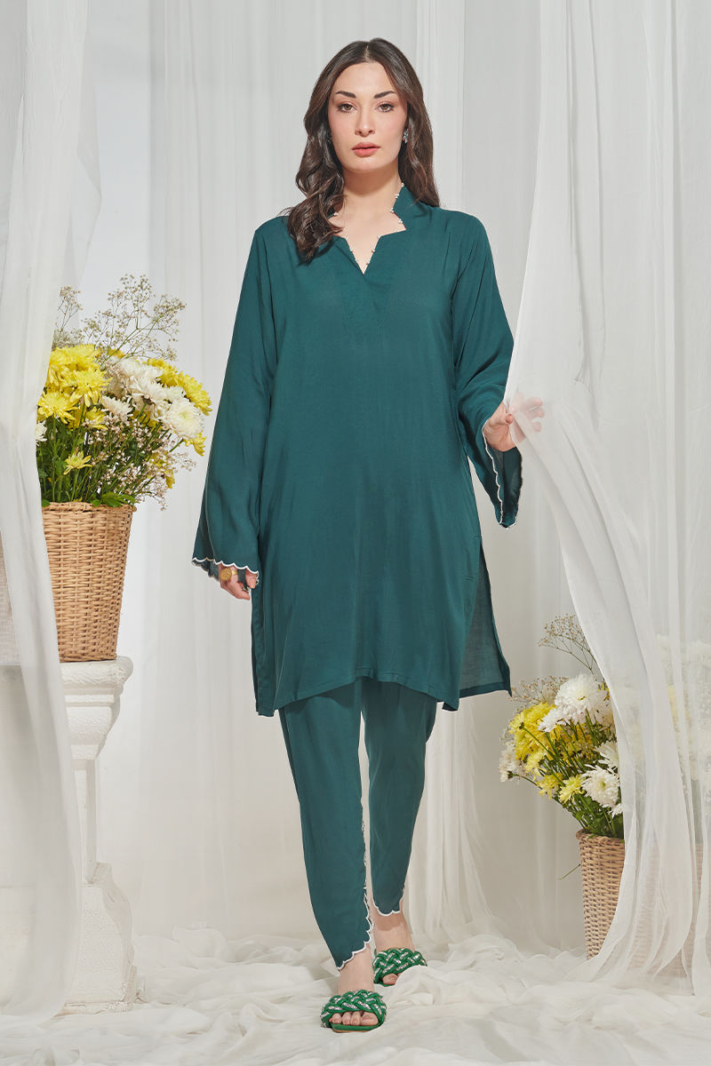 A lovely wearable straight shirt with pearl details on the neckline with flattering cutwork embroidry.