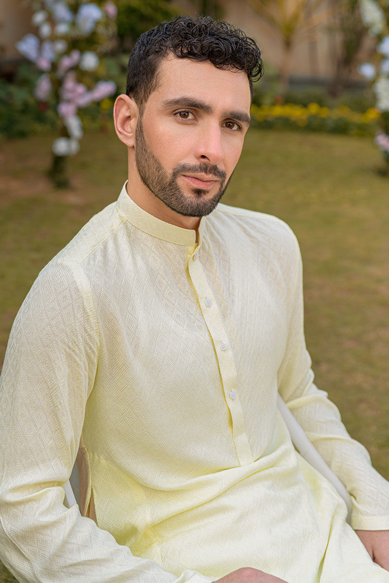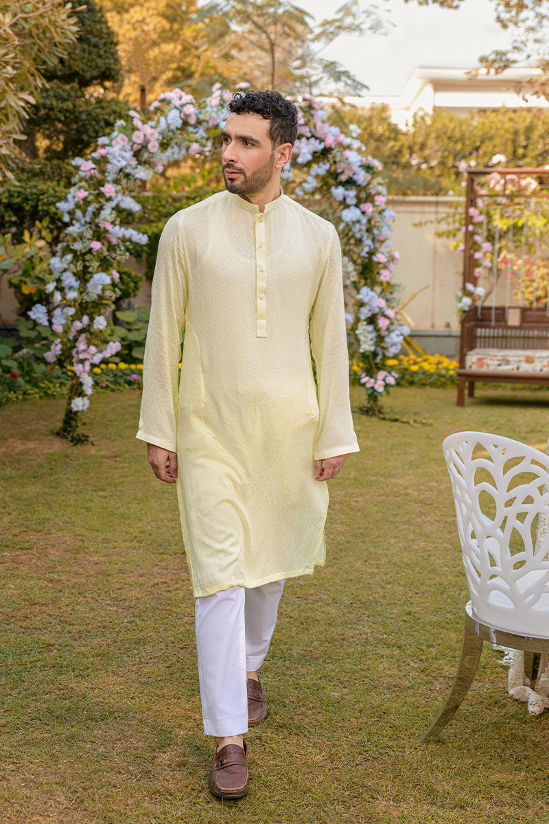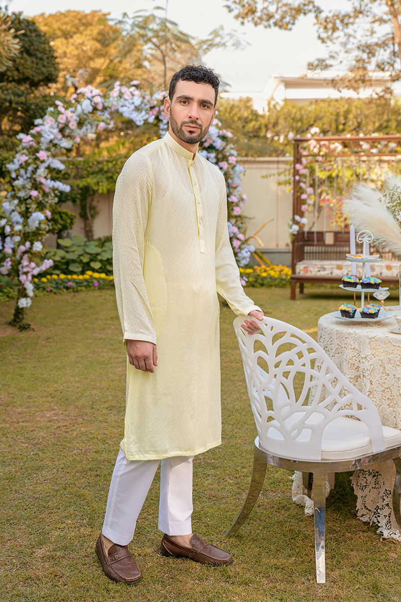 Elevate your style with a cheerful yellow kurta paired flawlessly with white pants